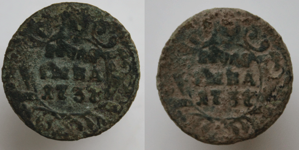 Продолжаю пробовать чистку. Теперь уже с микроскопом. Убрал грязь и песок. Зелень кое-где рыхлая, старался особо не трогать. Но в некоторых местах рельеф все равно осыпался (вторая цифра 7, растительный орнамент слева от нее). На этом остановиться или чистить дальше? Что еще нужно сделать с монетой (БТА, полароид, воск или что-то еще)?