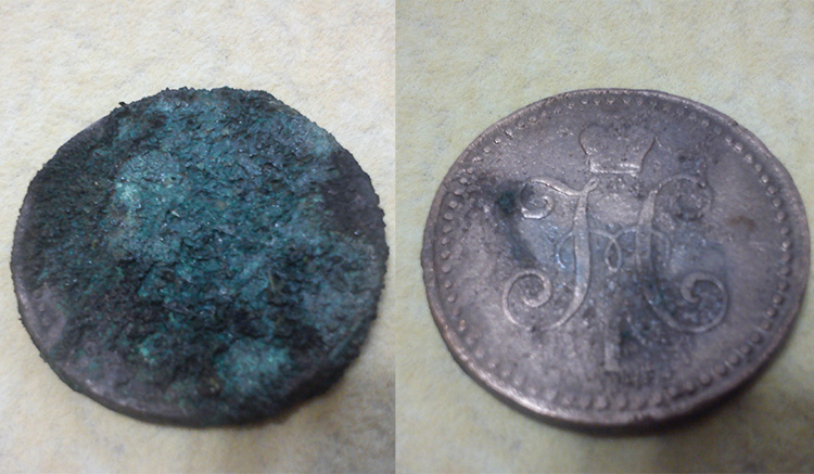 QUOTE(Согласен @ Oct 12 2015, 10:20) То есть с этим ничего не поделаешь? Просто я подумал, что может быть как то из земли их нужно специально извлекать, не дать высохнуть до расчистки и тд... По хорошему как только достали из земли надо бы их сразу класть в баночку с дистиллированной водой, чтобы не успела монета высохнуть, так сказать "почувствовать кислорода". -------------------- Могу копать, могу не копать... но всё равно буду.