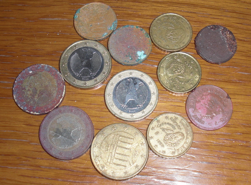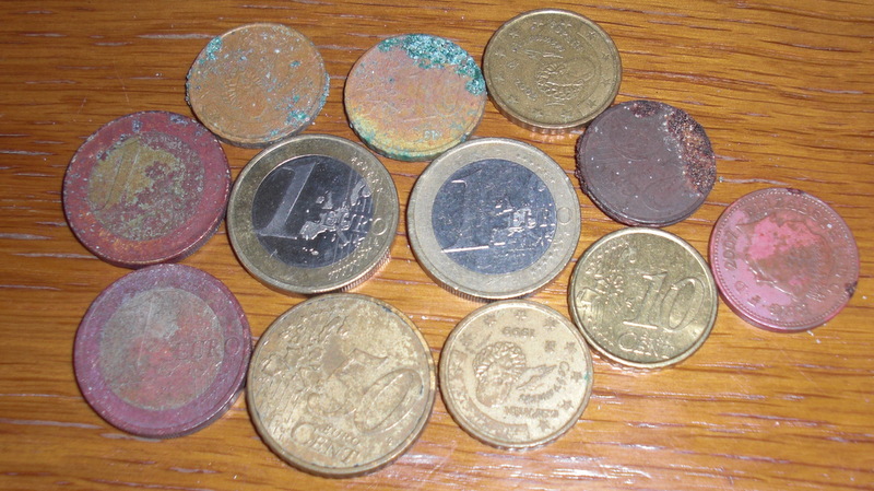 И так первый день копа,время 5.30 утра ,.Отель расположен в 50 метрах от пляжа.Пдъём в 5 часов и вперёд.Сонный администратор проводил меня равнодушным взглядом.На пляже ещё темно.Включил прибор и пошёл по первому ряду лежаков.буквально через пять метров сигнал,поддел ногой песок и вот пожалуста 1 евро.Ходил до половины восьмого.Поднял 12 монет.