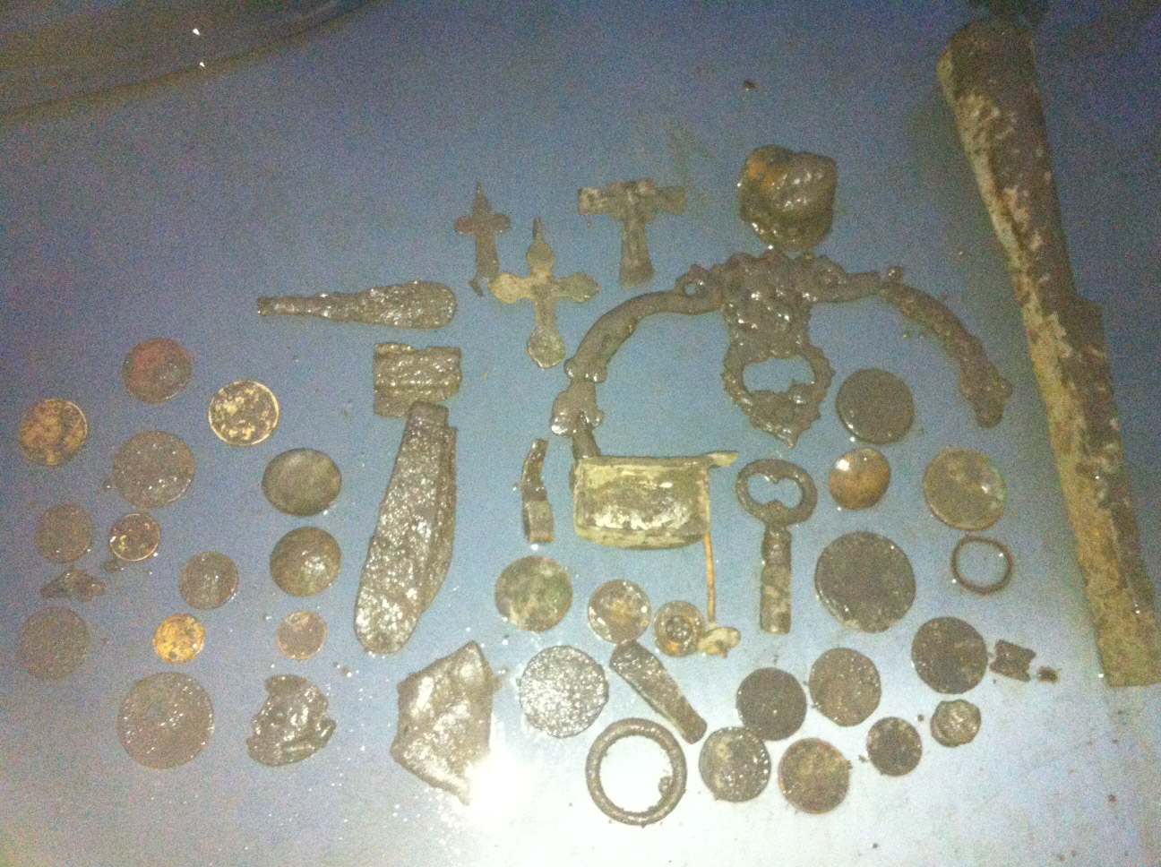 QUOTE(uamax @ Mar 24 2013, 22:17) А мы вчера с товарищем успели побегать до выпада очередной партии снега с двумя Деусами, правда целый день лил дождь, но разве это проблема?))). Деус купил этой зимой, по счету был третий выход до этого был 75 SE, т.е. прибор еще осваиваю. Столкнулся вот с такой проблемой, на одном месте вместе с монетками и пугавками попадалось много железа. Так вот Деус практически все железо озвучивал в цвет, часто железка давала четкий монетный сигнал(показания 95) при снятии грунта показания сразу менялись на 97-98, приходилось капать все и пару монет все же были откопаны на показании в 97. Не смотря на все положительные особенности прибора, это на мой взгляд значительный минус, т.к. работа была проделана титаническая(сами думаю знаете, как в лесу под дождем, среди корней деревьев откапывать ямки и потом обнаруживать кусок железки). Сразу хочу сказать, что настройки пробовал разные и реактивити увеличивал и шумодав поднимал, результата не получилось добиться никакого. Может быть уважаемы деусоводы прольют свет на эту проблему и отснимут соответствующий видос? Весна все равно придет, рано или поздно, хотелось бы до этого времени разобраться со всем. Выкладываю фото(с телефона), как результат выхода, находки на двоих, но настройками и освоением прибора все еще категорически не доволен!!! Это пройдёт -------------------- Все ли грибы можно есть? Все! Но некоторые только один раз...