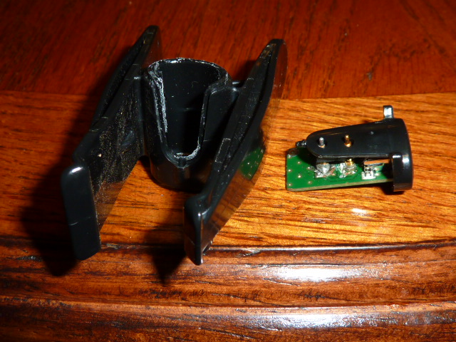 Разобранная прищепка, поддеваем и вытаскиваем. Контакты были отломаны от самой платы. Паял обычным паяльником, потому и нагадил припоем, зато надежно как чугунная отечественная сковородка. Ластмассовую перегородку лучше снять - расплавиться, в квадрате (+) в остальном (-) Сообщение отредактировано dakota: May 17 2013, 19:45 -------------------- Да прибудет с нами сила!