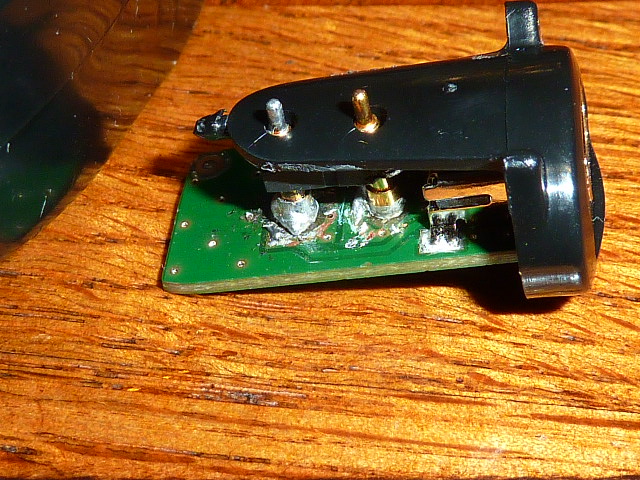 QUOTE(dakota @ May 17 2013, 20:40) Контакты подвижны, катушка подключается на зарядку с трудом или вообще не подключаются. Разобранная прищепка, поддеваем и вытаскиваем. Контакты были отломаны от самой платы. Паял обычным паяльником, потому и нагадил припоем, зато надежно как чугунная отечественная сковородка. Ластмассовую перегородку лучше снять - расплавиться, в квадрате (+) в остальном (-) Разобрал свою. Контакты болтаются сами по себе, плата сама по себе. На плате следов припоя вообще нет. Похоже они сами просто к плате приставлялись, и держались на честном слове. |