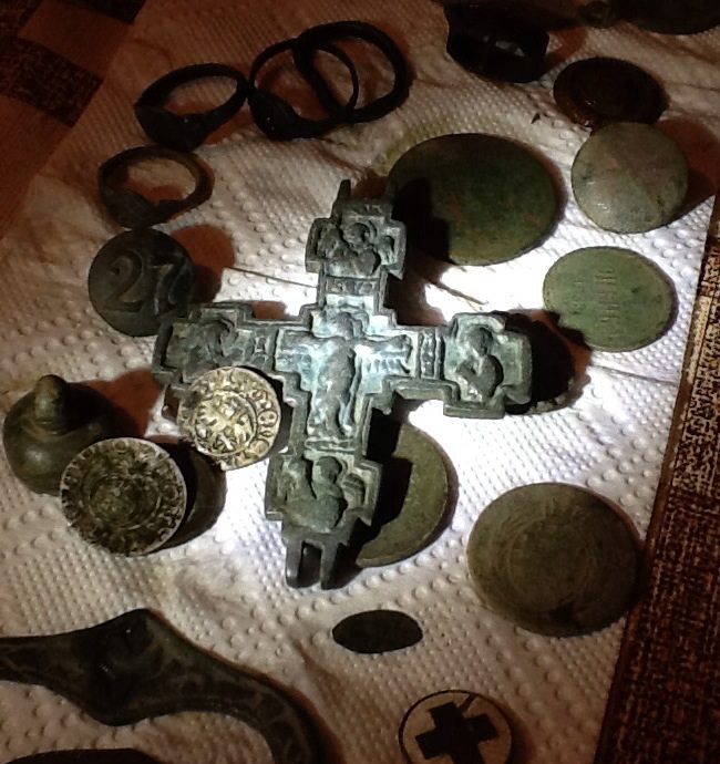 QUOTE(Петрович @ Nov 20 2013, 12:52) По разному. И так и так. Но могу однозначно сказать, что на слабо и средне замусоренных местах 11" однозначно эффективнее. Опять же порадовало то, что очень хорошо обнаруживается мелочь. Да и железо с новой катухой лучше распознается. QUOTE(Петрович @ Nov 20 2013, 13:28) Сейчас я как бы не вижу совершенно никакого смысла рекламировать 11". Я просто написал о своих впечатлениях. Эллипс я больше в руки не возьму. Я полагал, что эти два поста, написанные лично для Вас и фото с разноплановыми находками, дают сведущему человеку достаточно информации, чтоб сделать вывод. Но увы, этого не случилось. Вот если б у Вас ник был попроще, я бы конечно расписал бы все подробнее. QUOTE(Хитрый Жук @ Nov 20 2013, 14:34) Думаю подобным переходом на "Ты" можно считать пятый отзыв оставленный в моём профиле 23.03.2011 в 15:55 - Не думаю,что ты такой уж хитрый Жук.Скорее всего просто нормальный человек! Удачи! Если это каким то образом задело - я извиняюсь. Я человек адекватный, и не скандальный И всёже, для прояснения ситуации, в дальнейшем на "ты" или на "Вы"? Спасибо за помощь и доброту. Шучу Попробую у кого-нибудь другого спросить, что бы даже я понял Я тоже человек не скандальный и можно бы было на Ты, но у Вас это получилось слишком фамильярно, а я этого не люблю. Так что, лучше на Вы. Вот, дополнительное фото. Тут далеко не все находки, сделанные 11" катушкой. Первую фотку Вы видели уже. Согласитесь, неплохо для трех выездов по 3-4 часа каждый. Вложенные эскизы изображений -------------------- А ты что,рассчитывал здесь увидеть живого епископа?!