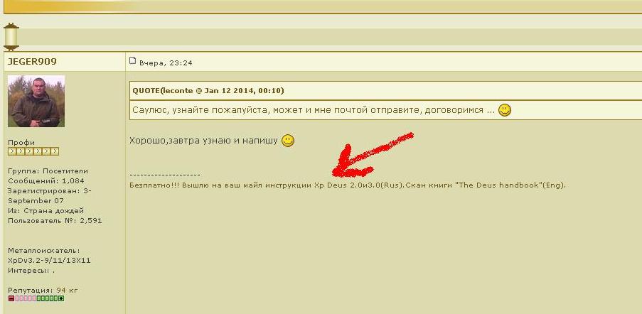 QUOTE(Tata @ Jan 12 2014, 00:05) Да вот же, Саулюс специально написал. QUOTE(КУБОК @ Jan 12 2014, 03:16) Так где инструкция? Шутка? ***** Добрый Вам день КУБОК. У Саулюс, его ник JEGER909 в подписи написано: «Бесплатно!!! Вышлю на ваш майл инструкции Хр Deus 2.0 и 3.0 (Rus).Скан книги "The Deus handbook"(Eng)». Вам нужно обратиться к JEGER909 в «личку» и он Бесплатно!!! вышлет Вам инструкцию к Деус. С уважением! -------------------- «По природе своей, всё запутанное тяготеет к ясности, а всё тёмное к свету». Стефан Цвейг.