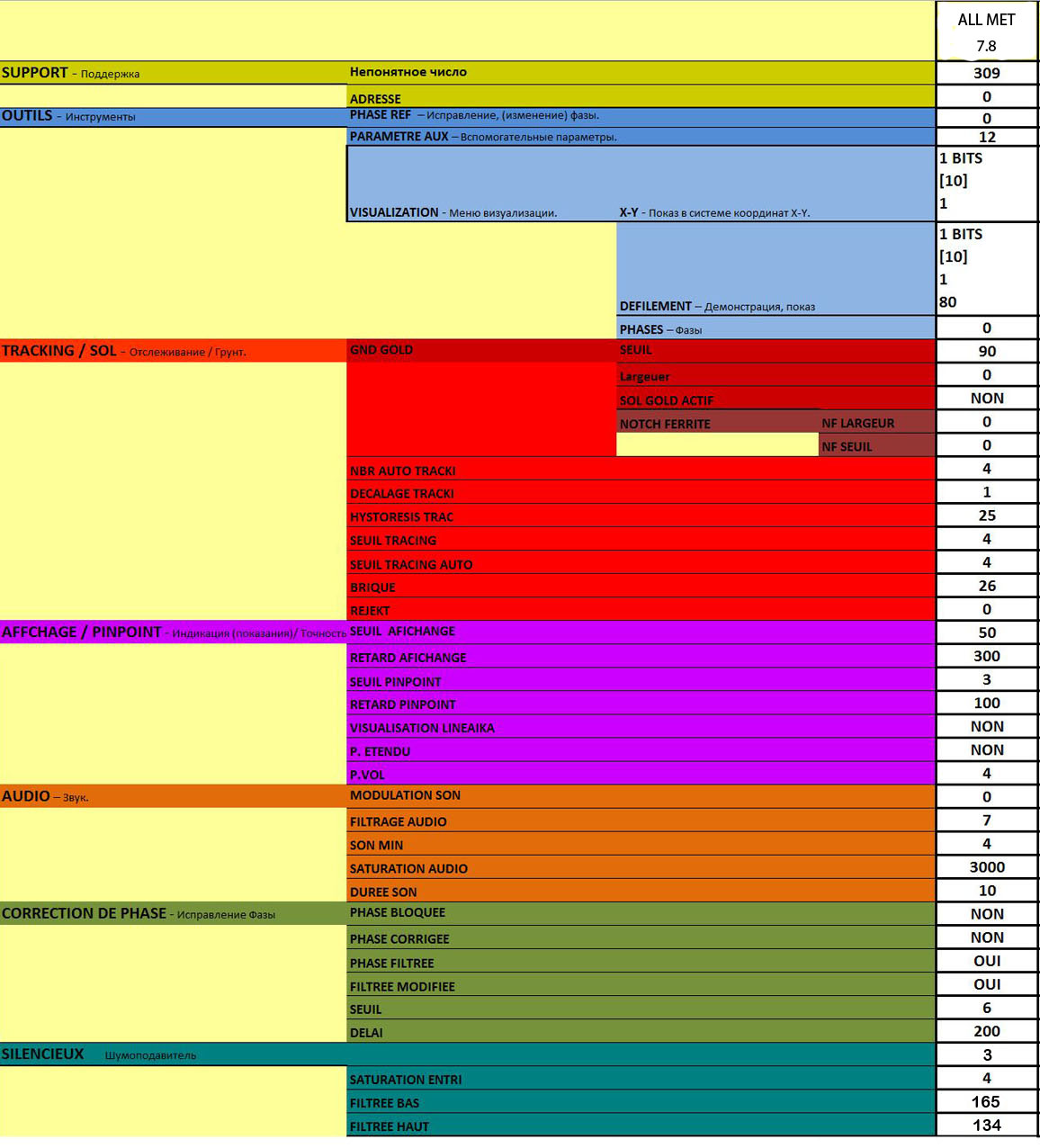 QUOTE(asgo @ Jan 14 2011, 13:55) Подскажите кто-нибудь у кого прошивка 1.2. В программе АМ какие настройки дискриминатора, включая экспертное подменю? стоит 1.2 русиш,в АМ(обзывается "Все Металлы")изначально:грунт90, дискрим 0, чуйка 90, частота 7.8,железо+5,реакт.1,звук.отклик+4. эксперт обозван как "профи".в этой функции при выделенном дискриме раскрывается управление тонами-2,3,4или подача. Что за "подача" -пока не понял, т.к.с аппаратом только знакомлюсь Сообщение отредактировано Би Джи: Jan 14 2011, 19:20 -------------------- сущность мира не изменить...