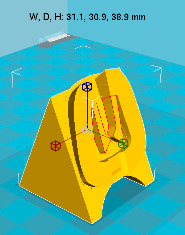 Если кто-то будет печатать эту или любую другую модель деусячьего копытца, надо учитывать важный ньюанс. Копыто, и ее основание - не целиком монолитны. Усики защелки, обведенные красным, крепятся к детали только лишь своим основанием, но не плоскостью. В модели предусмотрен разрез между усиками и основой. И при печати надо это учитывать. Или располагать деталь на столе так, чтобы принтер при печати не залил этот разрез расплавленным пластиком вследствие гравитации. Или печатать копыто и его основание раздельно, и склеивать потом с учетом подвижности усиков. Они должны двигаться, иначе защелка работать не будет. Я делал и так и так, оба варианта рабочие. |