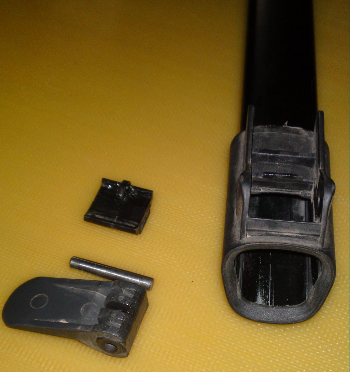 Поставил нижнюю штангу на первое деление, через 20 - 30 мин. чую, нето! Зажим оказался слабоват и штанга вылезла на полную длинну. Что делать! Может фиксатор подстёрся, а может ..... да всё может! Пришёл домой и стал мудрить. Получилось не плохо. Так можно делать на нижней штанге, на верхней не нужно переусердствовать, так как она из аллюминия и просто прогнётся. Всё в картинках. Далее. Далее. Маленький кусочек плёночки 0.1 - 0.2 мм в один, два, три слоя, спас меня! Вот тут. Вложенные эскизы изображений |