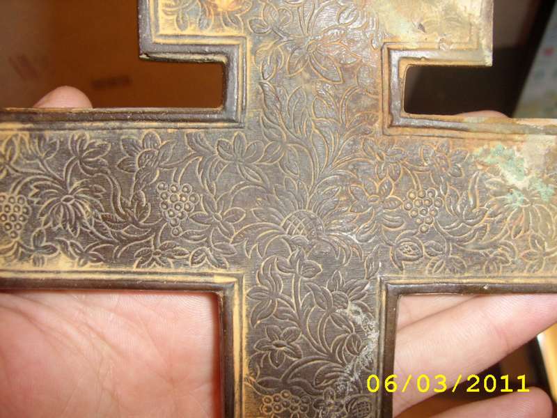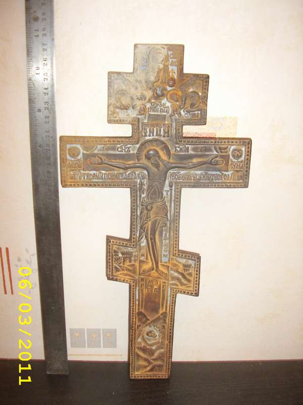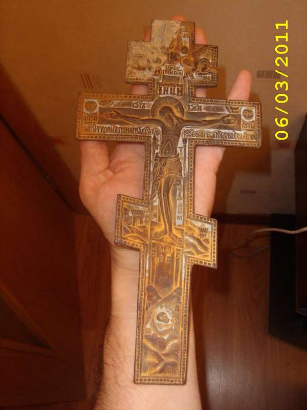 Вот! Хочу показать, вчера обрёл! Спасибо товарищам за приглашение в Тульскую область! Весь день ни одной монетки! А потом...! Расскажу по порядку: с начало уловил поверхностный сигнал...потдел дёрн ...1 коп.СССР.1957г....провожу над этим место, опять сигнал...цветной но рваный 92-98....подкопал немного ВДИ 98 чёткий...чувствую что то цветное и большое, включил пин...примерно определил размер, начал копать(фото с копа позже пришлют), штык лопаты...появляется нижняя часть креста...как его не задел лопатой одному Богу известно...товарищи курят рядом...сидят...говорю крест...они:-ну и что? говорю:-большой!!! Короче надо было видеть