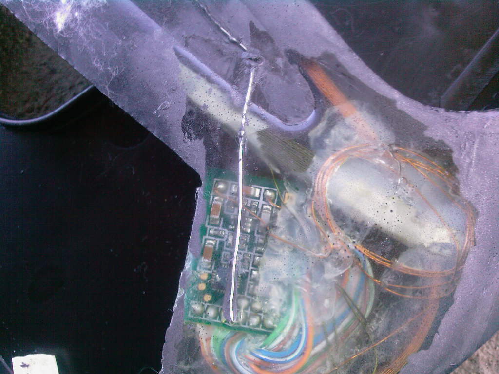 ну вот, тогда аккуратненько выковыривайте силикон с одной стороны, паяльничком разогревайте эпоксидку с другой, и добирайтесь до контактов платы, выпаивайте провода, еще раз проверяете провод на коротыши (1-1,1-2,1-3,1-4,1-5,1-6, 2-2,2-1,2-3.... и т.д.), потом на коротыши проверяйте контакты на плате по той же схеме, и если все нормально, паяете все на место предварительно не забыв записать последовательность в которой провода были припаяны.