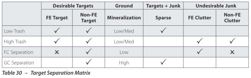 А вообще настройки в процессе поиска могут переключаться как угодно часто - все зависит от сочетания грунта и мусора. Если правое значение авто-чувствительности выше 20 и мало "мусорных" сигналов - переключайтесь в Low Trash. Если авто-чувствительность выше 20 и много мусорных сигналов - в High Trash. Если авто-чувствительность падает ниже 20, и если вы не рядом с помехами - включайте Ground Coin.