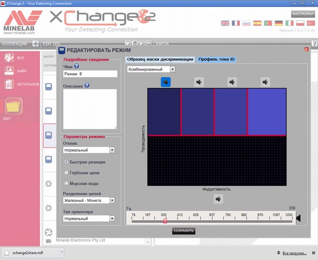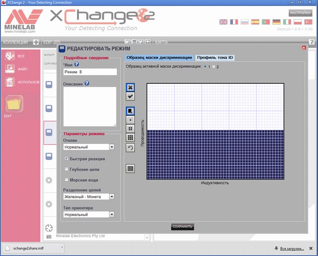 QUOTE(zalexstudios @ Jul 4 2014, 05:50) Пожалуйста не путайте маску дискриминации (которая выложена здесь) и настройки самого прибора! На панели управления есть кнопка с лева в верху, "катушка с отходящими вниз лучами" смена маски дискриминации, вот её нажимайте! "Профиль тона комбинированный" мне так нравиться! Никакой какафонии нет! Дак я про маску и пишу.Не увидел я там нормального дискрима,железо активно.Выложи если возможно скрин с маской.Может у меня не загружается чего.Подскажи если не там смотрю ..... |