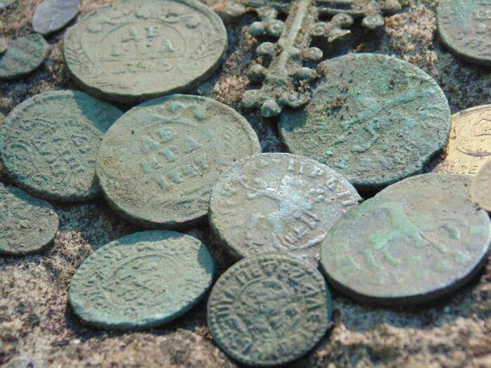 Монетки стали сыпаться с метровой глубины а закончили сыпаться на двух метрах.