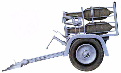 маневренности тяжелых дивизионов реактивной артиллерии была разработана пусковая установка 280/320-мм турбореактивных мин на колесном ходу обр. 1941 г. В отличие от пусковой установки обр. 1940 г. она была выполнена целиком из металла и состояла из четырех основных частей: ствольной фермы, верхней подвижной рамы, нижней неподвижной рамы и колесного хода. Ствольная ферма представляла собой двухъярусную конструкцию из прутковой и угловой стали. В каждом ярусе имелось по три направляющих гнезда под 320-мм мины. Каждое гнездо состояло из двух колец большого диаметра, соответствующего диаметру головной части мины, и двух колец меньшего диаметра, соответствующего диаметру хвостовой (реактивной) части мины. Кольца были скреплены четырьмя металлическими прутьями, изогнутыми по образующей мины. В задней части каждого гнезда имелись упоры для удержания мины. Для стрельбы минами калибром 280 мм в широкую часть гнезда вставлялась металлическая оправа с внутренним диаметром 280 мм. В задней части ствольной фермы около каждого гнезда были укреплены штепсельные коробки для подключения электрозапалов. С помощью проложенных в металлических трубках проводов штепсельные коробки были соединены с общей штепсельной коробкой, служащей для подключения электрического запального аппарата. С помощью пусковой установки 6 турбореактивных мин выстреливались в течение 10 секунд, два таких залпа установка могла произвести в течение 5 минут. Существенным преимуществом установки обр. 1941 г. по сравнению с установкой обр. 1940 г. являлась возможность наводки на цель не только в вертикальной, но и в горизонтальной плоскости. Благодаря наличию подрессоренного хода с колесами, снабженными пневматическими шинами, установки могли транспортироваться со скоростями до 35 км/час. В качестве тягачей использовались стандартные армейские легкие или средние тягачи, в которых одновременно перевозился расчет пусковой установки и 36 турбореактивных мин. Первое массовое использование пусковых установок обр. 1941 г. имело место на Восточном фронте во время германского летнего наступления в 1942 г. Масса в боевом положении (зависит от калибра мин) 1630/1600 кг Масса в походном положении 1130 кг Калибр 280/320 мм Количество направляющих 6 Начальная скорость мины 145 м/с Угол возвышения от 5° до 45° Угол горизонтального обстрела 22° Скорострельность 4 выстр/6 с Дальность стрельбы (зависит от калибра мин) до 1925/2000 м Вес 280-мм мины 82 кг Вес 320-мм мины 79 кг Вложенные эскизы изображений -------------------- И для тебя,и для меня