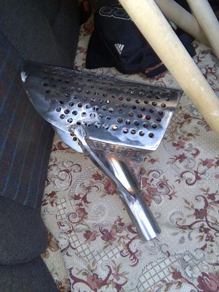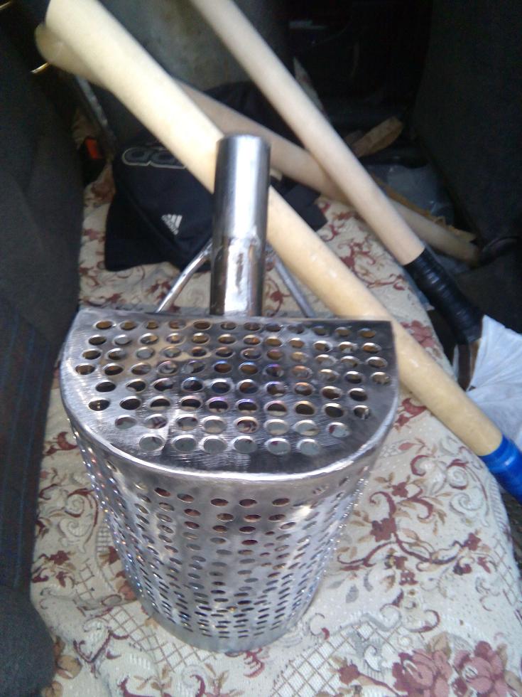 Я изготовил Лопату из нержавейки с рукоятью копает хорошо! Применил сумку-сетку для просеивания грунта, испытания прошли успешно, даже без МД, залетела монета 50 коп. с 12 раза.