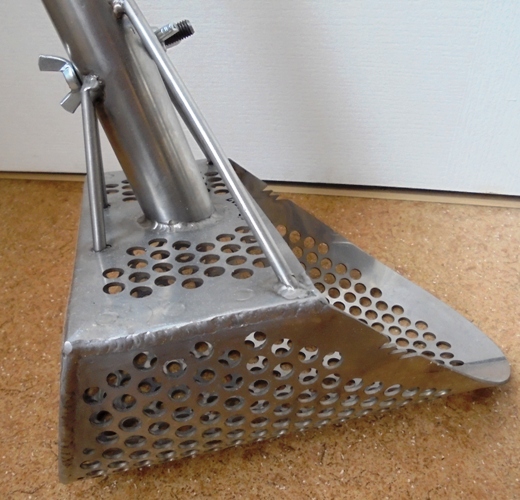 Покупал скуп на форуме из нержавейки. Ручку сделал от снеговой лопаты из алюминия.