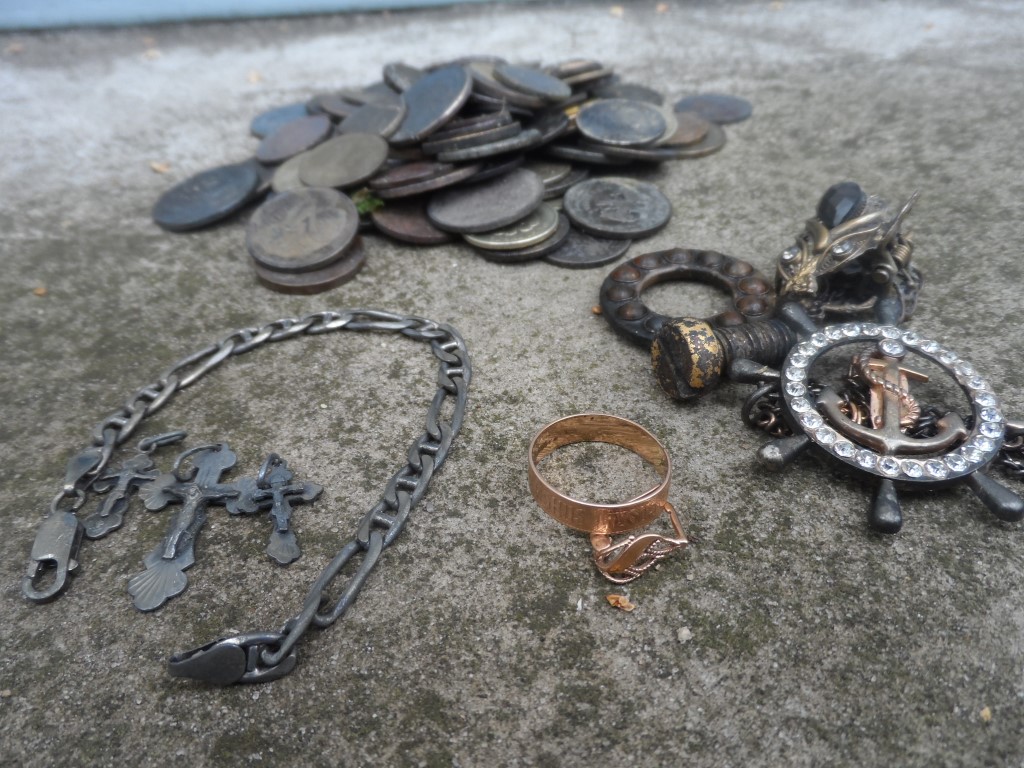 QUOTE(DeepMaster @ Jul 13 2015, 21:56) Выбрался на старый пляж, день фуфлыжника, одно полезное, цепочка нержа Сотня монет, от Aлександра третьего до наших дней, так ничего и не блеснуло .... Я думаю,что многие,из числа присутствующих здесь,с удовольствием поглядели бы на монеты(кроме современки,естественно). |