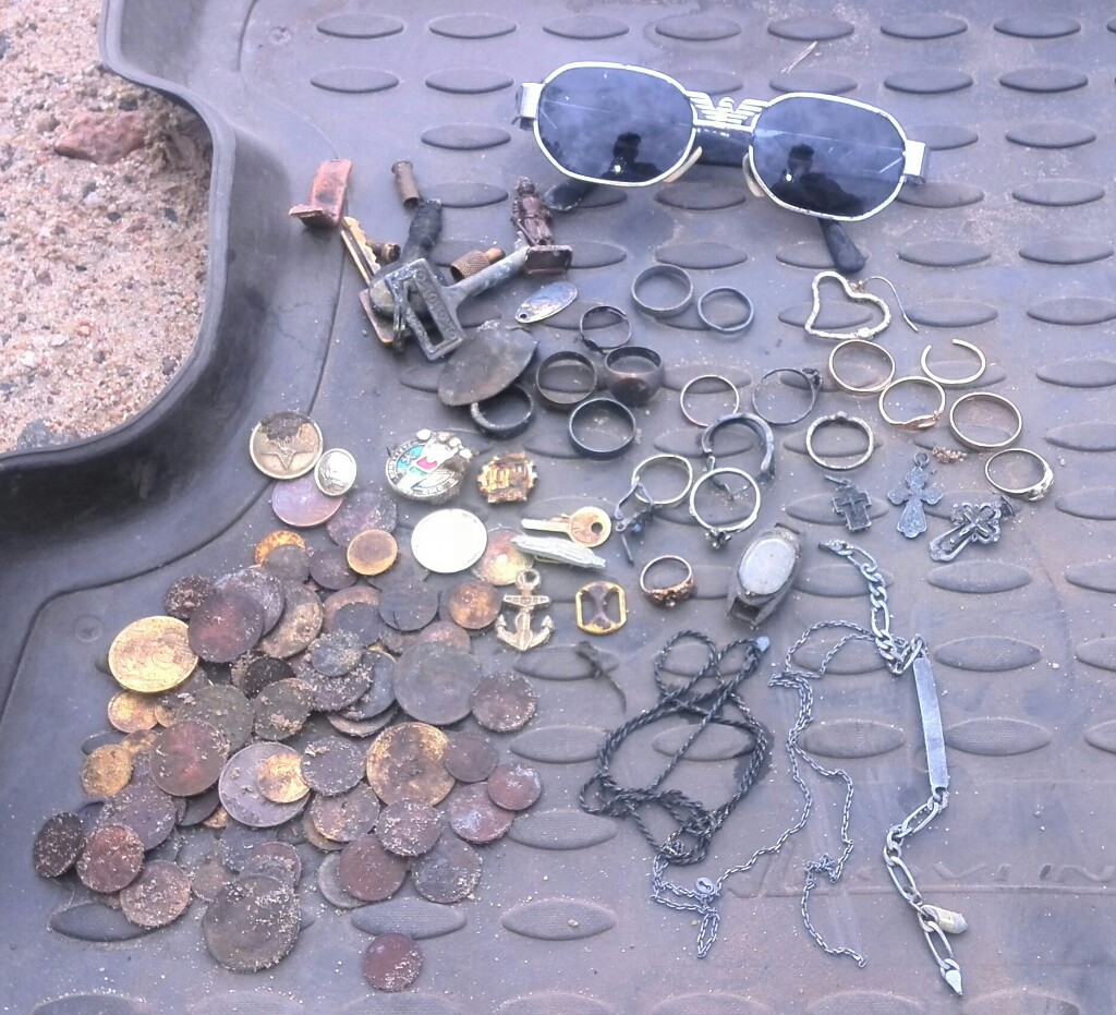 Подскажите от чего может потемнеть золото??? На фото справа женское кольцо, стоит проба 585, но оттенок у него черный, снизу советское 583, снаружи тоже потемнело. Вчера на том же месте поднял колечко 333, вначале подумал серебро, пока не почистил. Грунт- прослойка светлого песка, потом темный, снизу глина.