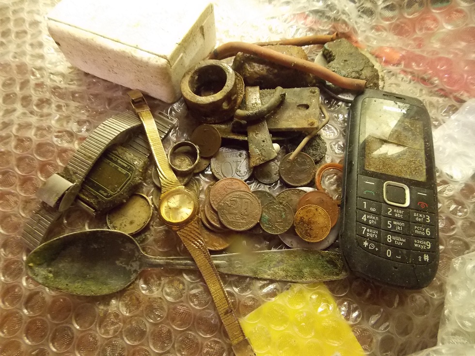 Ну никак спектра не хочет порадовать золотишком в этом сезоне. Пока подводник не готов хожу по колена в воде на частоте в 22,5кГц. Помимо того что на фото вчера поднял неимоверное колличество мелких обрывков фольги...