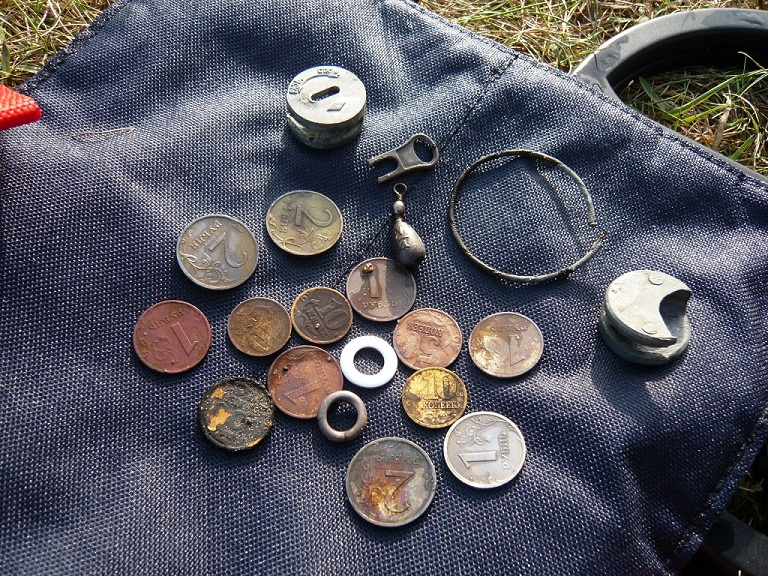 И вот итог 8-ми часового копа. За кадром осталось килограмм ржавых пробок и около десятка мелких монеток... Что-то мне подсказывает, что за кадром ещё много чего осталось. |