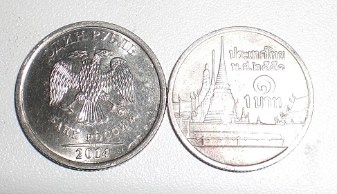 Обычный тайский бат..Частенько в РФ попадаются...Затаскивают туристы..