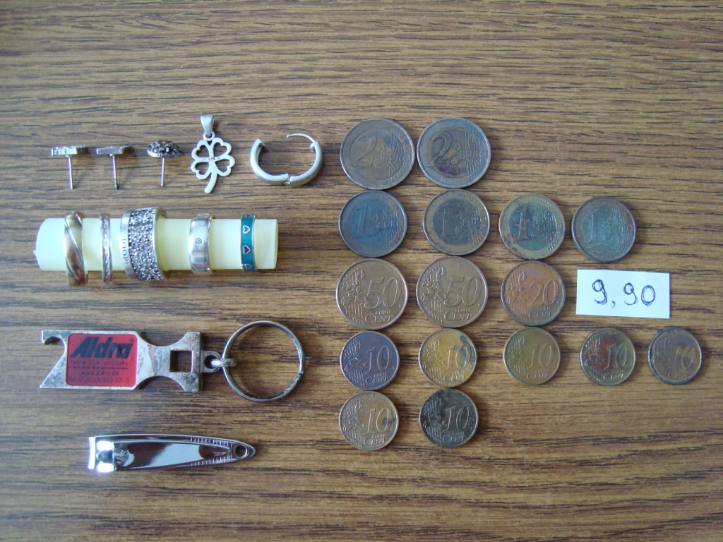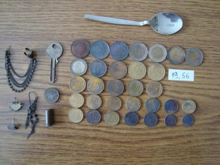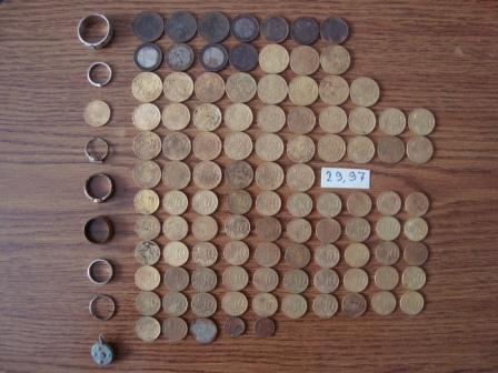 Жаль конечно свою старую учётную запись, но возможно как-то ещё удастся её восстановить. А пока попользуюсь этой. Заканчивается к сожалению купальный сезон, и решил съездить собрать крохи на свой любимый карьер. Голландцы посещали недавно его целыми бригадами, но ведь всегда кто-то что-то да пропустит. Иногда при температуре воздуха 14-18 градусов появляются случайные купльщики, но на них надеды уже нет. В общем в первый день результат был доволи сносный. Порадовало 19-ти грамовое полезное колечко JOOP с камушками, и правильный обручёк. Так как пляж безлюден, наблюдал издалека за коллегой, который в далеке проходил с пол часа по сухому, и скорее всего потеряв интерес удалился. А вот второй день акромя немного евроденег ничего не принёс. Ну я и этому был рад. А на третий день, но уже ночью решил поковырять газонную травку около одного места отдыха, место конечно подаёт надежды, но засрано мусором очень сильно,(оставлю на зиму) ну и ковырять газон нужно аккуратно, что б никто не догадался, иначе могут надавать по шапке за порчу. Вот такие дела. Всем удачи! Вложенные эскизы изображений |