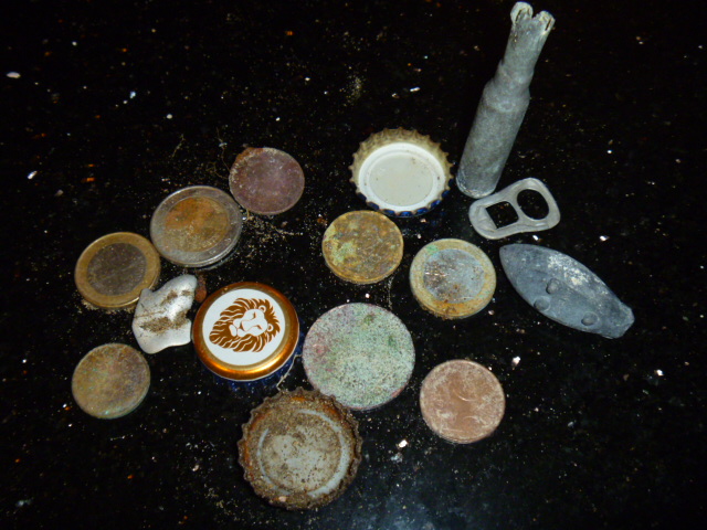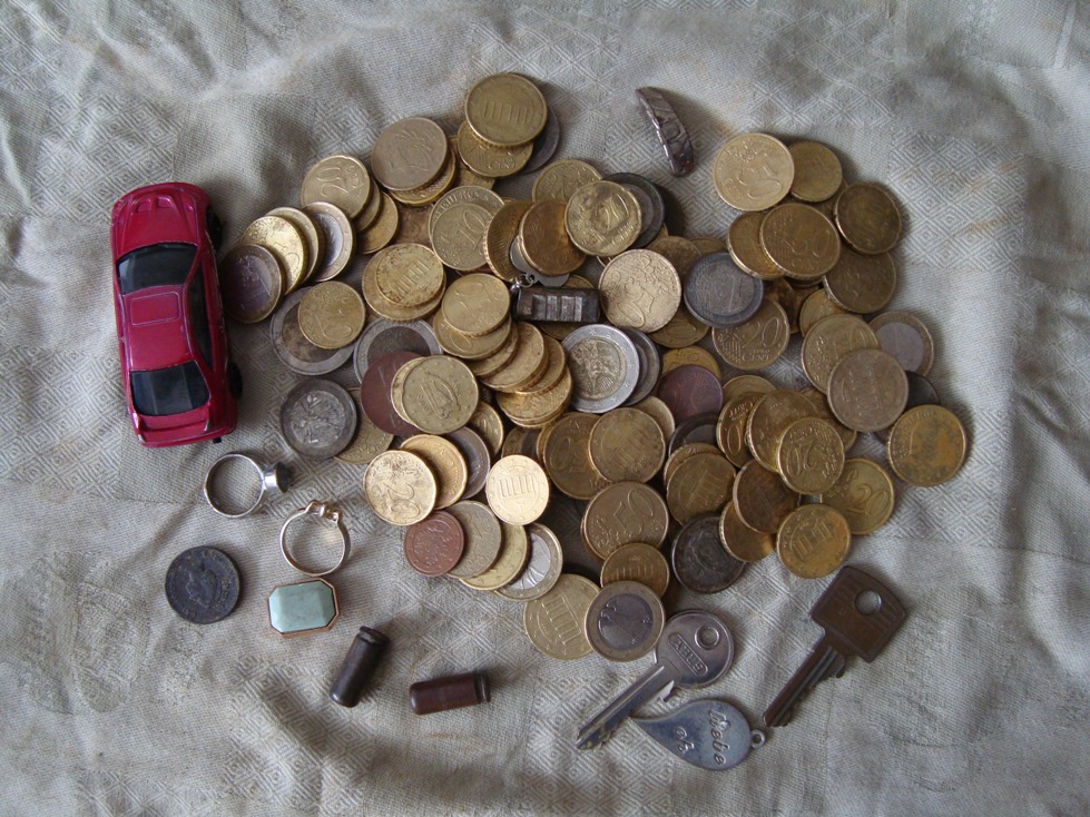Начинает попадаться мелочь свежего засева, совсем не окисленная, даже найден пятак, но не ССР. В остальном-тишина.