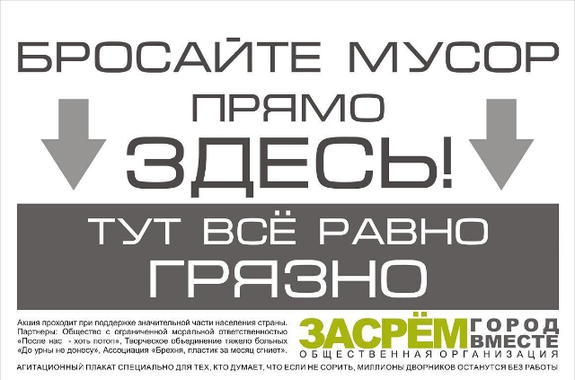 Я вот такие и анологичные плакаты, распечатал, заламинировал и развесил на своей улище которая ведет к озеру. По началу меньше стали пляжники мусор бросать, затем перестали обращать внимание. Некоторые плакаты украли и повесили на других улицах.