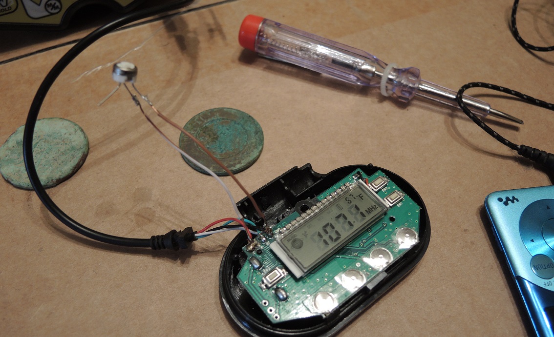 Есть Сорекс Про к которому хочу приспособить трансмиттер, т.к. провод от наушников уже немного напрягает. В данный момент прибор в Смоленской обл., а трансмит. в Москве. Первый пост и тему смотрел, но т.к. я с радиоэлектроникой на Вы, то меня необходимо ткнутьносом... Трансмиттер на первом фото (куплен в магазине за 480 руб.), одна сторона внутренностей на втором, с другой стороны какие-то микросхемы... возможно еще что-то, но т.к. контакт для батареек припаян к плате, то просто так ее не перевернуть, но, вроде как, это не особо и нужно. Есть четыре провода: - красный Видимо для левого "уха". - белый. Видимо для правого "уха". - Зеленый. Это антена? - Черный. Земля? В моем случае красный и белый можно прямо по плате между собой соединить? Затем нужно взять сопротивление на 100 Ом (лучше конечно поэкспериментировать с регулируемым сопротивлением, как писалось выше, но... Что не так? где напутал? Что упустил? Вложенные эскизы изображений |