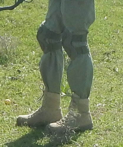 Нашил на энцефалитку прямоугольники из брезента. Вообще хорошо стало. А ремни от наколенника сбиваются и передавливают ногу.