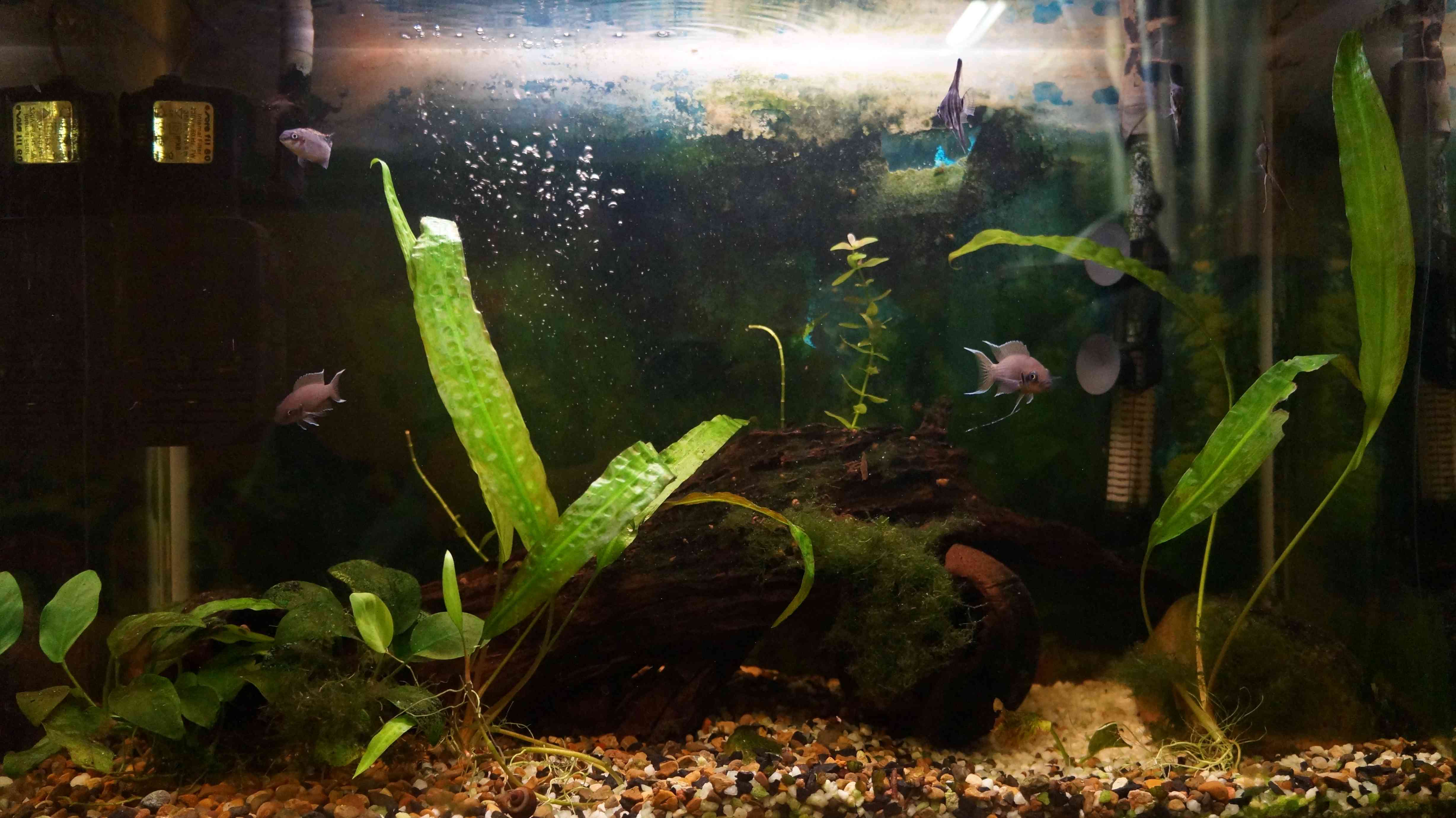 В прошлом году заместо помершего волнистого попугайчика завели аквариум на 80 л, чтобы кошке скучно небыло. Постепенно приобщаюсь.