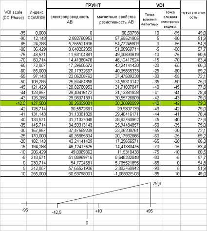 Абракадабра какая то, а не таблица. Как эту таблицу Деусом мерять? Черт же ногу сломит. Не проще ли открыть график X - Y и глянуть где грунт пляшет, а что такое дискрим 6.