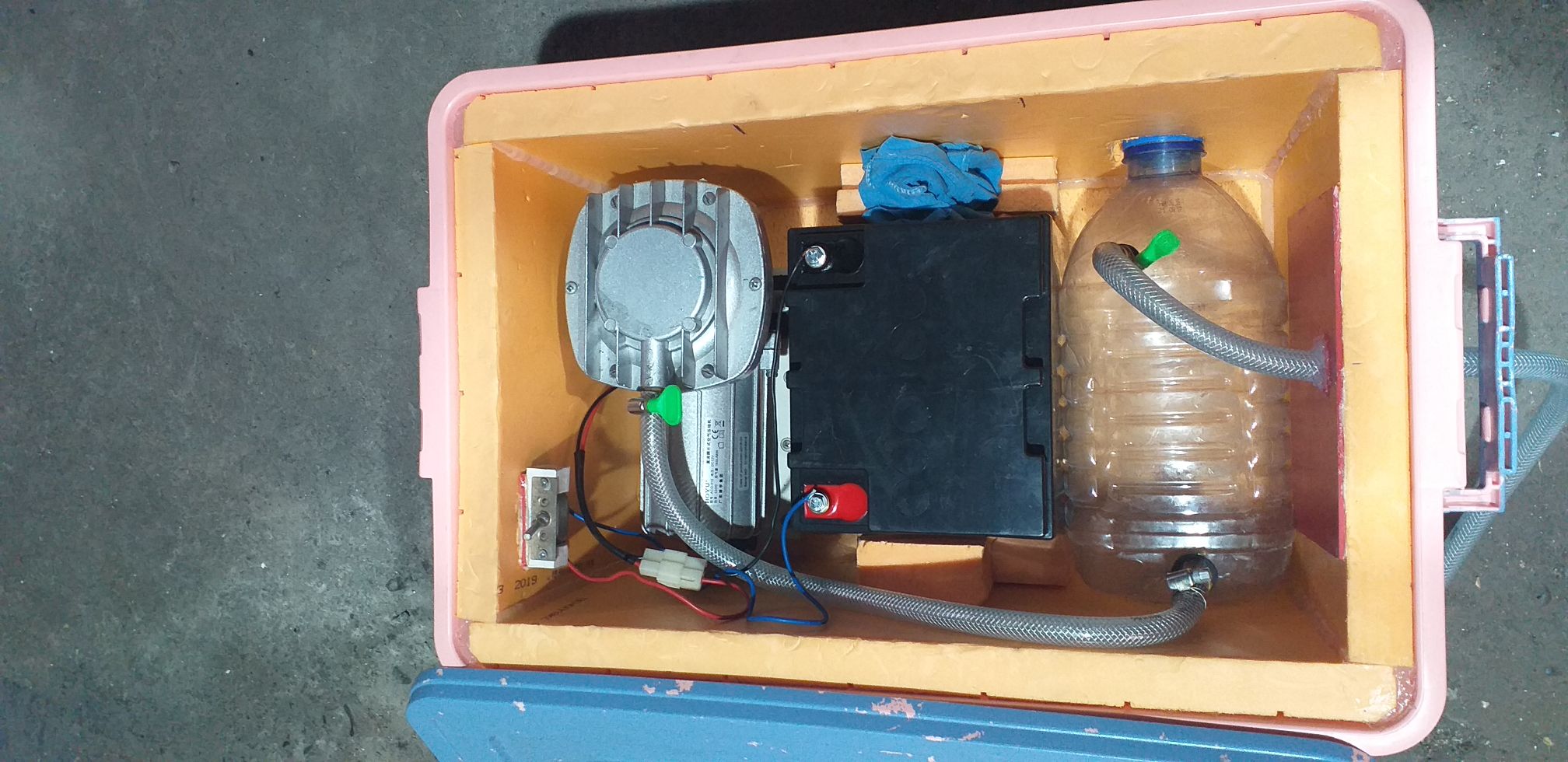 и еще нас счет компрессора когда приехал дамой разобрал компрессор потом тока понял почему воздух идет туговато. мембранка имела прорез длиной 3.5см. прорез как от ножа. заменяю ее камерой от машины проверено работает имею несколько штук в машине если понадобится можно поменять на месте.а сделать хочу хуку так. нужны чемодан пеликан компрессор тот же а вот вместо акума сделать чтоб как не крути заряд был бы. и полегче.и трубку которая с верху с клапаном чтоб при варианте перевертыша вода не попала во внутр. если сделать токую хуку тока надежную качественно то при поломке хуки взять шланг и на верх как плот тоже вариант.
