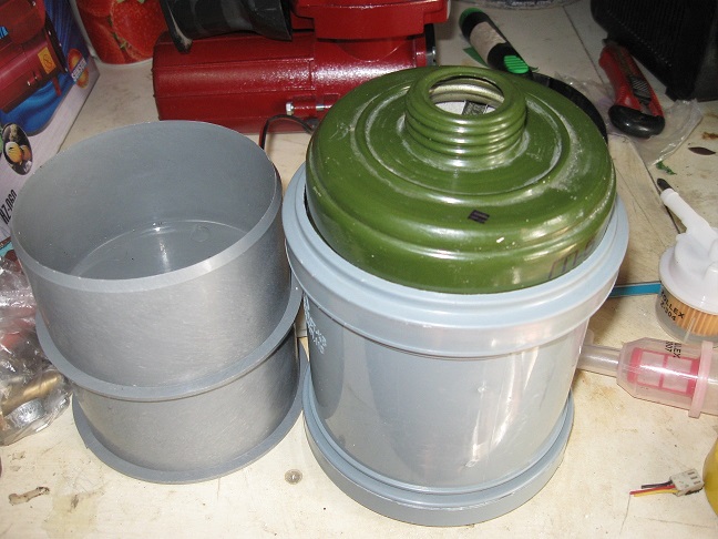 к моему и фото не нужно, муфта ремонтная канализационная пластиковая, 2 заглушки, в них врезаны 2 ремонтные муфты для поливочного шланга на полдюйма, ну и внутри 2 картриджа последовательно. стянуто 4 пластиковыми стяжками(хомутами) может позже стяну хомутами из нержавейки, полоса еще есть, клипс нет. вот в общемто и весь конструктив, у меня сейчас проблеммма с токорями ((( в идеале просто выточить раскручивающийся тубус с выходами под щланг под размер картриджей и весь тот конструктив, но пока так)))