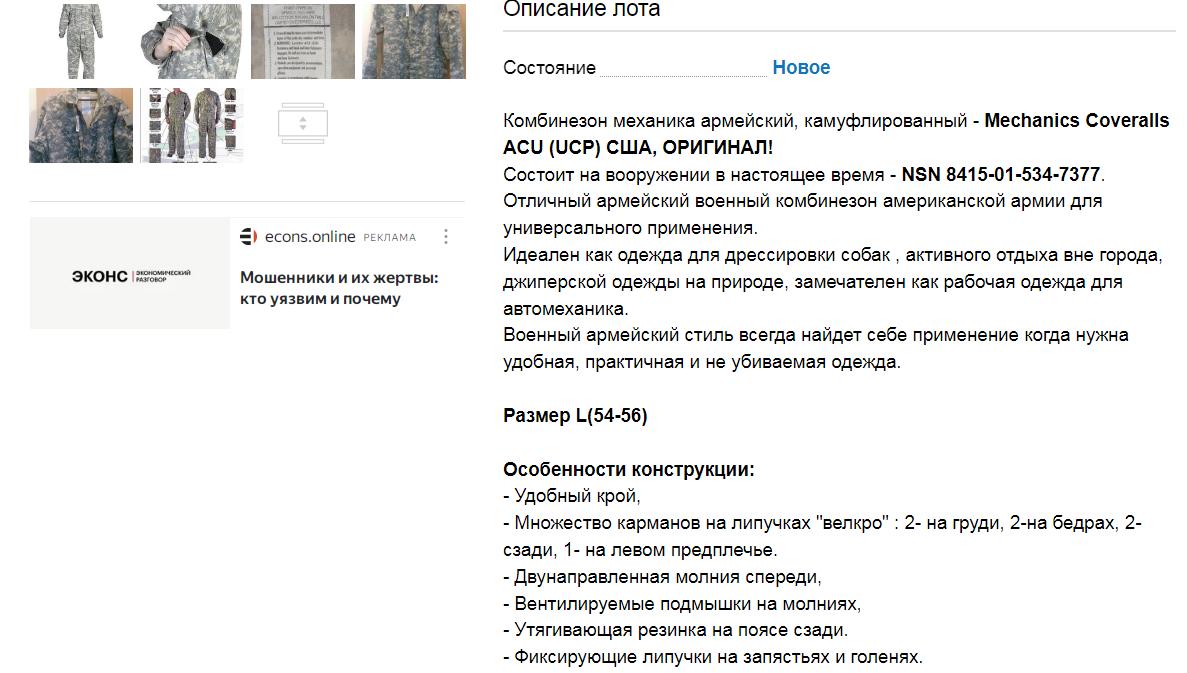 Купил лет 6 назад (может раньше) по дешевке на вито два летних комбеза механиков-авиаторов производства непонятно, скорее всего Китай для пендосии, но написано USA. Тело все закрыто, центральная молния закрыта клапаном по всей длине (на липучках), на руках и ногах липучки-манжеты. Масса карманов, все на молниях и липучках. Задница, колени, локти двойная ткань. Для открытых мест (типа полей) предусмотрены молнии вентиляции подмышками, да и рукава можно закатать. Клещей на данной расцветке ткани видно хорошо. И конечно обработкой не брезгую. Тут на фото (вид комбеза) цена конечно кусается, но если поискать по Тырнету (фото 3), то можно такой комбез найти и дешевле. Рекомендую как одежду от клещей. Со времени покупки покусан клещами не был. Продолжаю носить первый купленный комбез. Второй лежит прозапас и не собирается продаваться. Сообщение отредактировано Молотов: Feb 16 2024, 11:12 Вложенные эскизы изображений -------------------- В Вконтакте и других соц. сетях я не зарегистрирован, там не торгую и не покупаю!!!