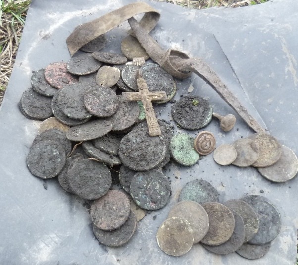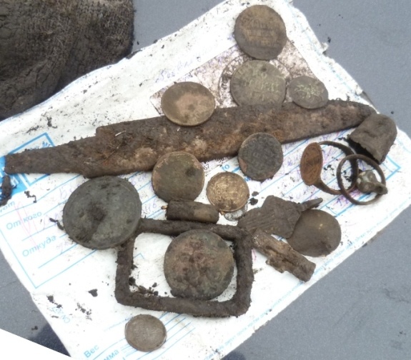 Потом пошли скудные находки Неделю походив по сухой уложенной траве, и погремев немногочисленными находками решили пойти на крайнюю меру -------------------- Более 300 монет по фиксу. Раздел Куплю-продам.