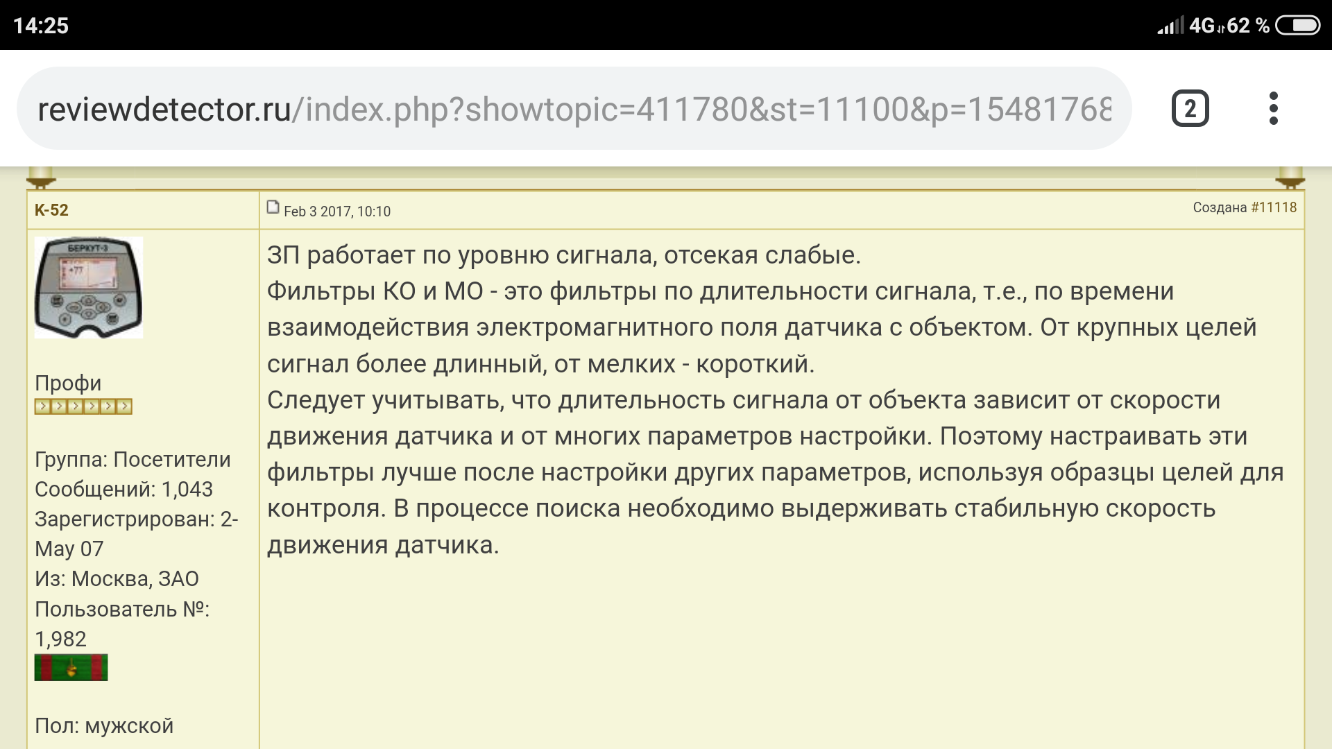 Правильно ли я понимаю, если фильтр МО выставить на максимум то получаем более быстрый отклик от мелкой цели? Испытывал на серебряном пятачке.