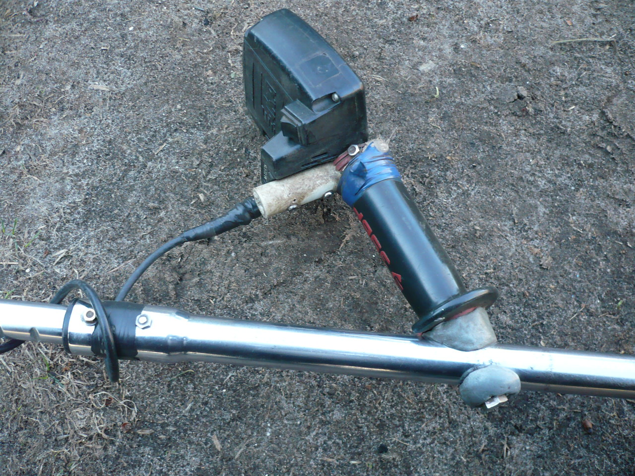 Что то одна фотка только грузится.Через пару месяцев после покупки прибора сломалась штанга на болту.Пробывал ремонтировать,но со временем появлялся люфт и снова ломалось.Покупать новую беркутовскую штангу не видел смысла,не надёжная она.Взял штангу от китайского электротриммера.Изначально она была телескопическая,но был люфт.Да и крепление ручки болтом не давало возможности его складывать.Решил сделать не разборный,нижнее колено только снимается.Проблема была поймать правильный угол на ручке.Много косых шайб сделал,но не мог добиться удобного угла.Выход нашёл с холодной сваркой.Выставил удобный угол,намазал сваркой,подождал,пока застынет и затянул.Ручку взял от дрели.Хожу так уже третий год,полёт нормальный.Не всем конечно подойдёт,но может кому и пригодится.