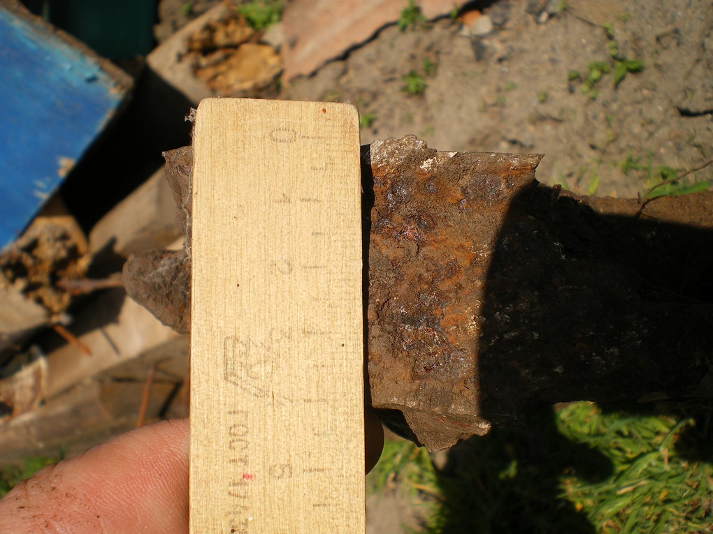Сегодня прогулялся пару часов с Беркутом, хочу сказать пару слов касательно перегруза...ИМХО не всякий метал даёт перегруз. Вот такой кусочек железки размером 30х30х4см = 15 кг весом (предположительно кусок брони) откопал с 30-35 см абсолютно без перегруза... правда в земле лежал ребром и показал ВДИ +68 по сварному шву, отметил красным. по остальному куску -72
