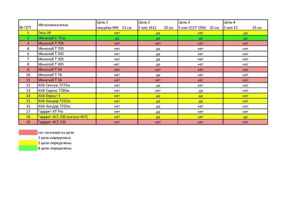 Сигнума там не было, вройте пробные цели на указанные глубины Делали его 3 человека ,я в том числе, По итогам мы сами офигели! Сигнума небыло-я в это верю. 5 коп СССР не увидеть на глубине 25 см или 5 коп Е2 на 35 см Или у вас что-то с прибором или метр был резиновый |