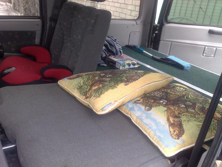 Эт потому что у патров 2005-2006 гг. салон был другой и седушки раскладывались в кровать. С 2007 года стали ставить рекстоновский салон и тут уже 2 варианта. Либо гондобить как показано выше, либо подтачивать и смещать ограничители и тогда сидения будут раскладываться в ровную кровать как на первых Патрах.