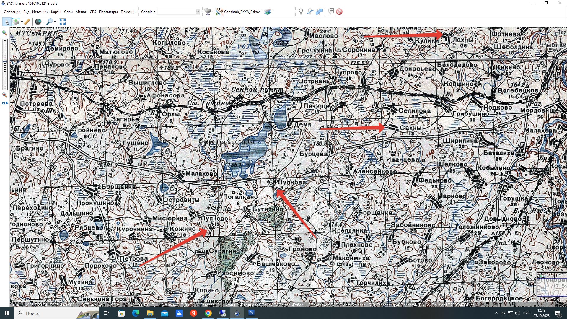 QUOTE(ЛозаХодящая @ Oct 27 2023, 13:28) Юг, юго-юго-восток Папково не вижу, зато Пупково аж две штуки. Сахны и Лахны от них северо-восточнее. Стрелками показал. Сообщение отредактировано Следопыт: Oct 27 2023, 12:46 Вложенные эскизы изображений -------------------- То, что нас не убивает - делает нас сильнее.