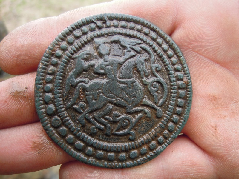 QUOTE(idru @ May 8 2012, 15:50) Привет Виктору, Николаю и всем-всем Фига се ладошка ВеСТЧь весьма высокого уровня Всем рыть вокруг с утроенным усердием Там уже до нас нарыто было. Не АКР, деревня 18 века, между монет и гвоздей подняли обломки шумелок, лапки утиные, и на краю поля Никола выцепил это... Что интересно это вторая, первую два года назад там же комрад поднял, только на другом берегу речки, та в половину меньше. А такого размера и веса ... По Белавину их известно 28, ну еще в частных собраниях . Думаю их не больше 40. Тамга хана Булгарии Сокольничий. Такого размера в каталогах нет. Для археолухов, поле активно пашется и удобряется, происхождение думаю, крестьяне где то в округе разрыли могильник, этой шайбой в пристенок игрались. |