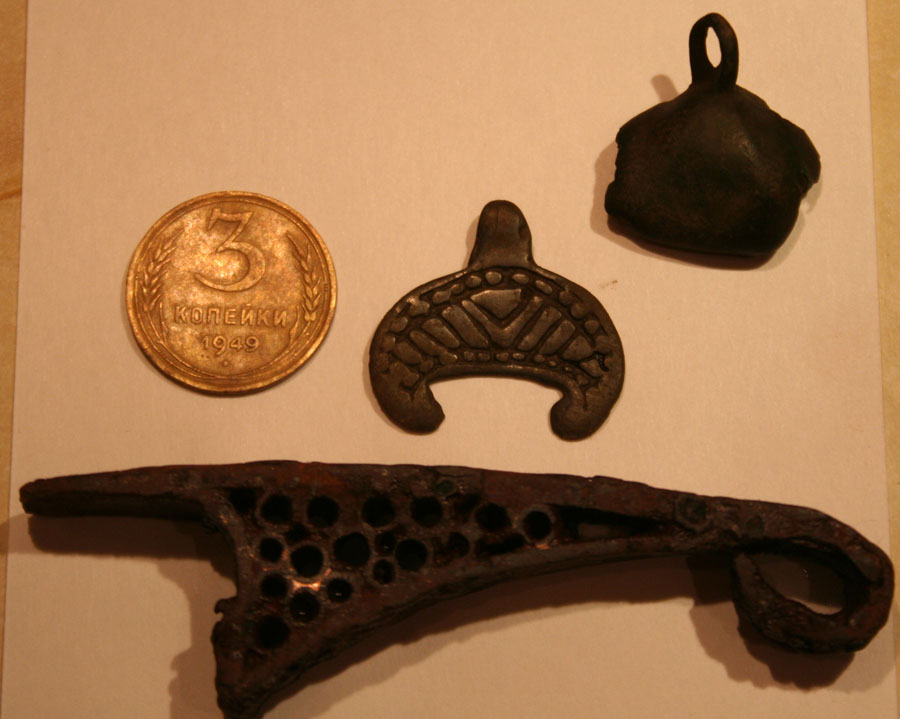 Цельсий мне стругает гроб... Дует в огненную флейту Летний ангел-долбо@б... " (с).. Но в поту, в лесу колючем Нам достались за труды Домонгольские висюльки - Не пустяк, туды-сюды.. ..Интересная кованная железная штука - подвес? Для светильника? Чуть отступив от домонгольского "пятна" в лес - кованная такая штука, дырья - НЕ просверлены, они именно скованы-спаяны из трубочек, и под ржой - не то меднение, не то еще чем блестючим покрыто.. ..А другу Дед земляной задарил красивейшую пряжку того же вятичского племени.. и ( ..А в Первопрестольную вернулись - а тут грозы были, и всяко такое. У нас на югах губернии - хоть бы ветерок.. чуть ласты не склеили - благо, в речку три раза ныряли.. ..Рапорт сдал начальник партизанского разведзвена ст-на запаса БПДанов.. ЗЫ: на вражьих картах место не отмечено, в списках ихних - не значится. Мы - ВО! Сообщение отредактировано BPD: Jul 27 2012, 22:59 Вложенные эскизы изображений -------------------- "Мы ответственны за тех, кого приручили..." (Антуан де Сент-Экзюпери)