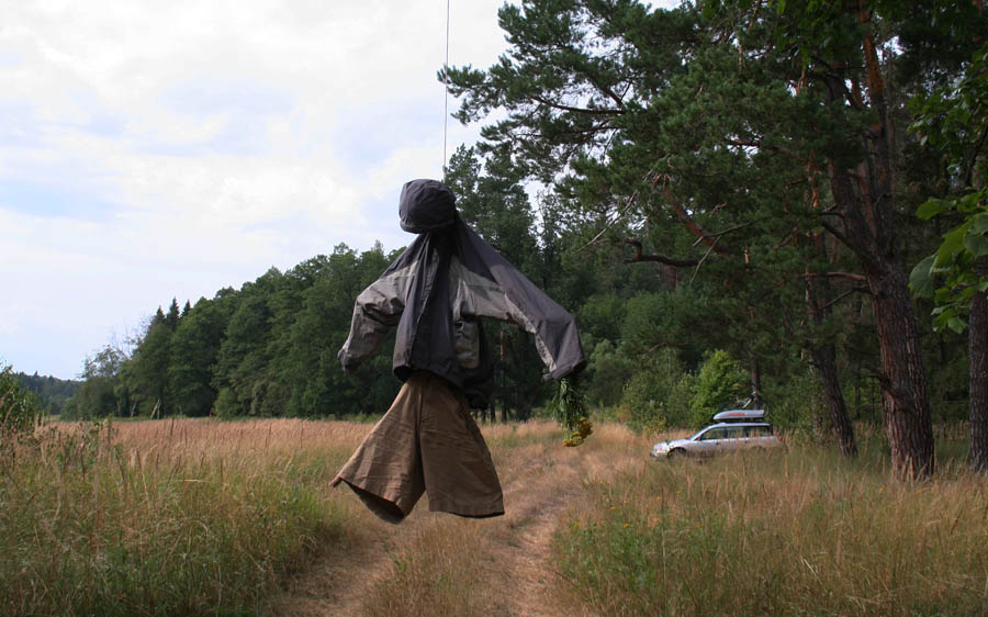 ..Но в лесу мы первым делом соорудили чучалу, в руку ей (чучале) вложили букетик, а в башку - все болести и дрянности... да и повесили ее на кривом суке. Не, в культах черных людей определенно что-то есть, если относиться к ним с уважительным хохотом.. ..В темноте приползла в лагерь страшная "ярь-медянка", оказавшаяся на проверку безобидной и безногой ящерицей-веретенницей, - зачел лекцию по герпетологии и живорождению, имел успех оглушительный.. ..И вспоминали классику:"Рыба сидела на дереве".. Правда, наши не сидели, а висели - но к вечеру подвяленные очень даже пошли (поплыли?) под прохладное пиво.. Вложенные эскизы изображений -------------------- "Мы ответственны за тех, кого приручили..." (Антуан де Сент-Экзюпери)