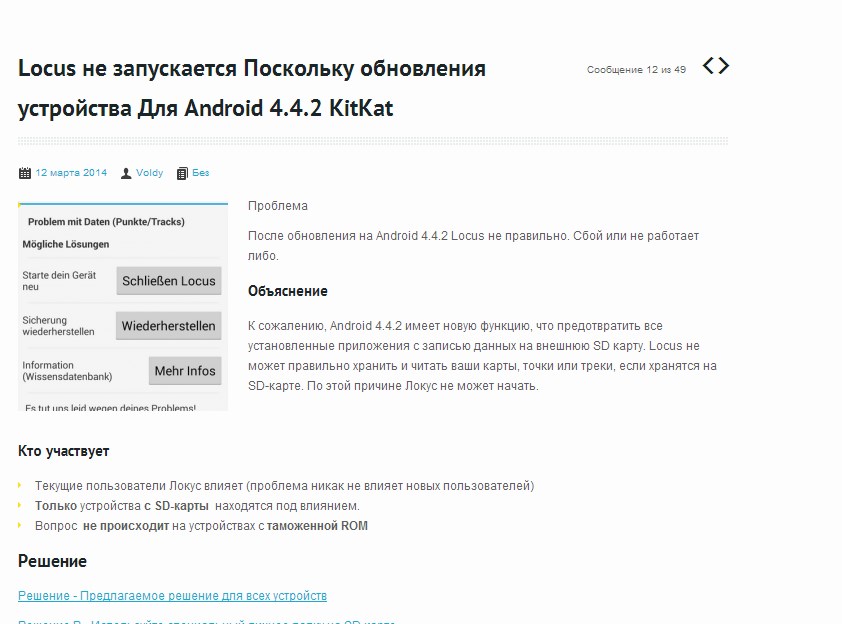 QUOTE(Maxbout @ Jan 9 2015, 14:45) На гугл маркете висит предупреждение для владельцев андроидов от версии 4.4.2 KitKat о невозможности автоматического сохранения карт программой Локус на внешнюю карту памяти в устройстве. Для чего предлагается указать путь вручную на каталог программы во встроенной памяти устройства. Как прописать врукопашную этот путь описано на английском и чешском ЗДЕСЬ Это обстоятельство пока притормозило приобретение данной программы. Подождём исправления. А вот, на русском языке! Вложенные эскизы изображений -------------------- Не ленись, с интернетом подружись.Много всякого найдёшь и отлично заживёшь!