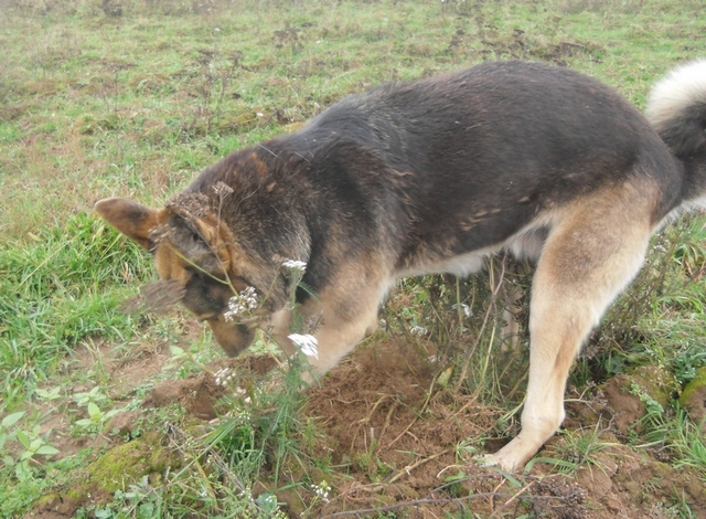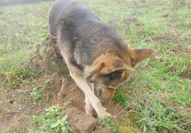 Лучше таксы копателя нет.Зарывается - только кончик хвоста торчит.А то и не торчит