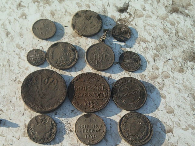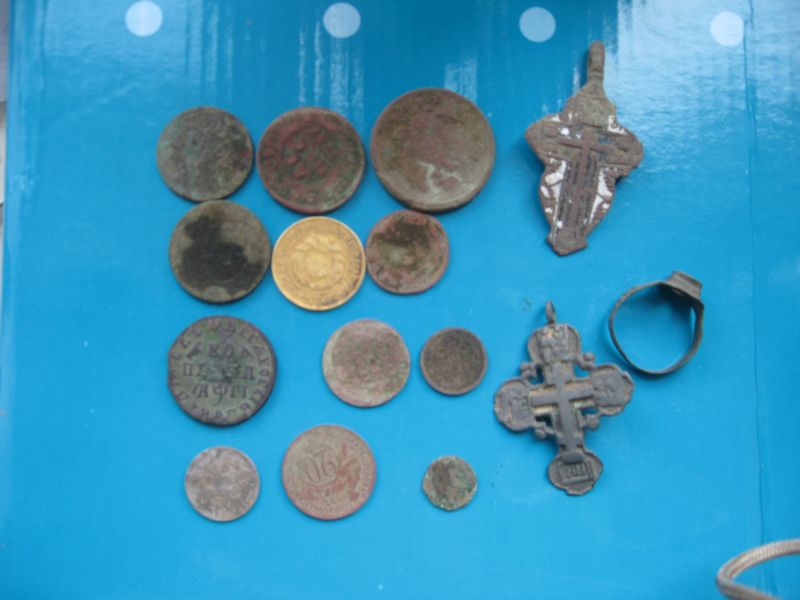 Вот выкладываю итоги вчерашних покапушек с джимми жаль времени было мало , думаю еслиб с утра находок бы было больше. За фото извиняюсь чёто с фотопаратом . Порадовала копейка петра и 10 коп массончик в серебре 1827 года.