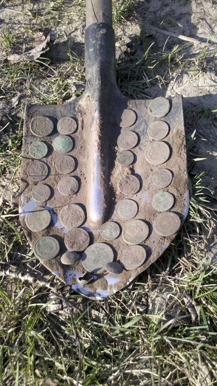 Там правда провода были не подалеку типа мини высоковольтка...может вот и помехи были, потому как я говорил что и напарник на сорексе и я ставили стандартную катуху. Катуха очень тяжелая, готовьтесь сразу качаться, но рука после в общем 5-6 часового поиска на следующий день не болит. Хотели зашурфиться и поснимать сравнительные тесты Ася Голиаф+Сорекс голиаф+Гарретт АТ Про Нел Биг...но устали, что и хавать некогда было...у меня находок было мало 3-4 монеты (опыта мало, застрявал на глубоких сигналах и так и не докапывался до них - вырывал ямы по 60-70 см.), аська нарыла 5, сорекс все остальное, вобщем все что нашли за день:
