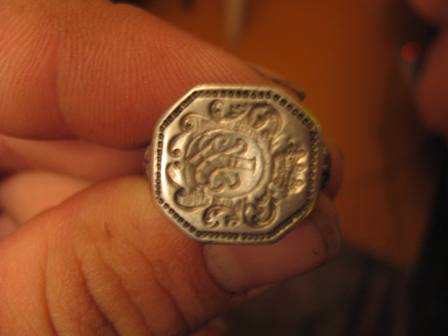 Извините, что вторгаюсь со своим перстнем, но на "Исламской нумизматике" висит вторую неделю и не оказалось спецов. Не одного ответа. Мое мнение что это исламское ,что перстень-печать. Перевода не могу сделать. Помогите чем можете. Особенно важен перевод. Металл медь или бронза.