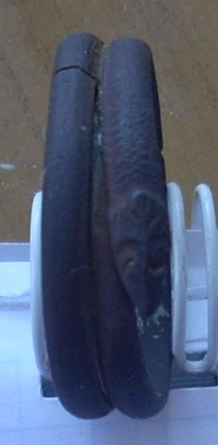 Голова , на 99% от тритона (у меня они в пруду на даче живут я эту корону не перепутаю ни с чем и морда рыбья , скорее , чем змеиная ). По инету поискал - мне из змеев попался только Уроборос , но , тогда , по идее , он должен свой хвост плотно жевать , а тут хвостовая часть обломана( металл очень хрупкий - чуть посильней возмешься крошиться начинает, на фото видно 2-е трещинки) не понятно жевал или нет. Найден в Серпуховском районе, сопутка всякая разная. Да. кольца змея паяны между собой. метал без окислов , пайка немного окислилась. Уважаемые знатоки , подскажите датировку , если можно . Сообщение отредактировано Konrad: Apr 29 2009, 12:03 Вложенные эскизы изображений -------------------- снегумного